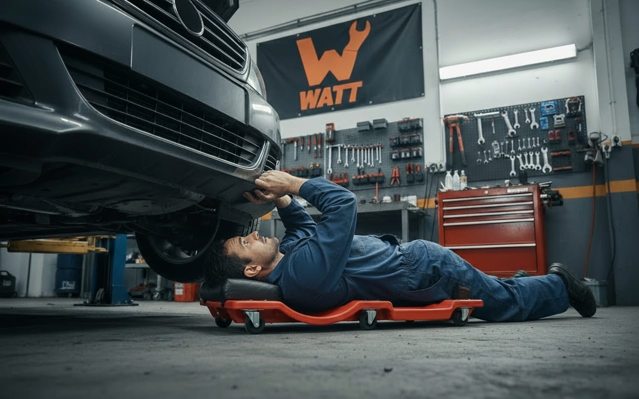 Couchette mécanique EGGLE 12 pouces avec Appui-tête rembourré et 6 roulettes pivotantes à roulement fluide